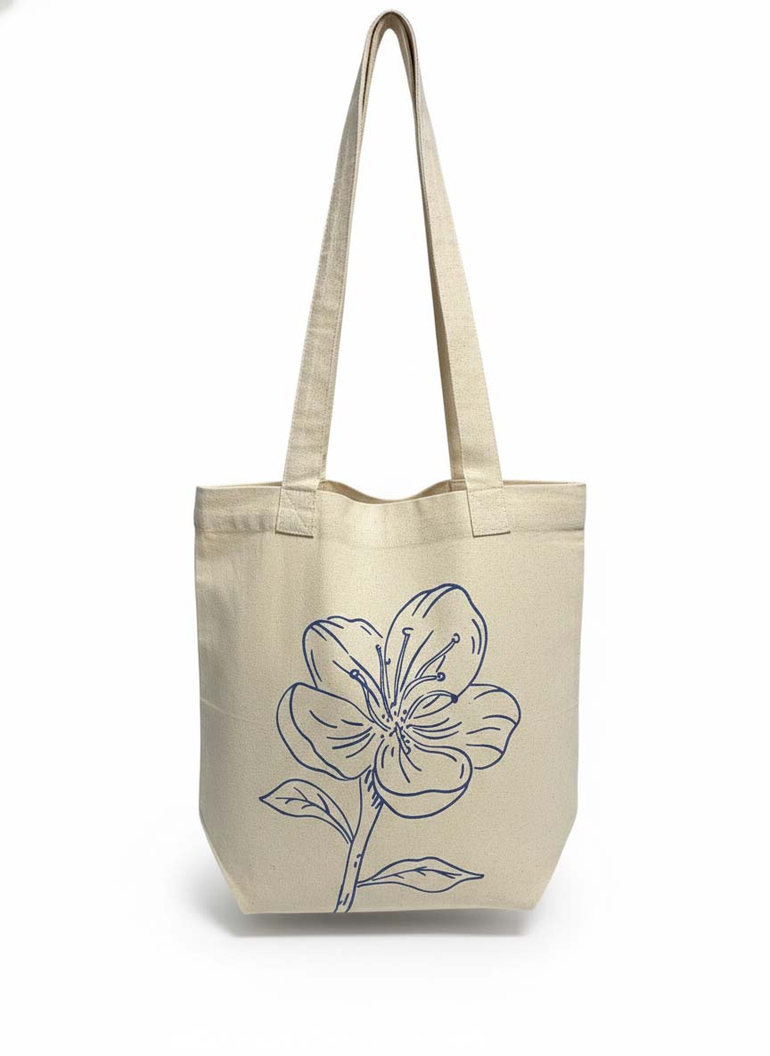 Cotton tote bag featuring a custom art design, crafted from 100% pure cotton. Designed for multipurpose use, it is eco-friendly and a sustainable choice for everyday carrying needs.